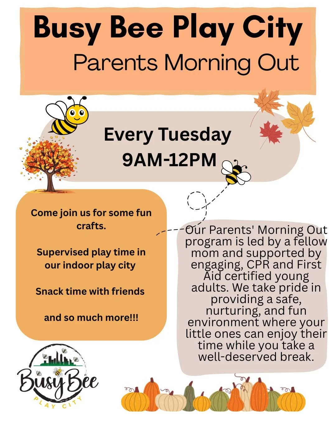 PMO is a three-hour program each week for busy parents. Your child will enjoy playing in our imaginative city with others, fun games and creative art projects. Our staff is CPR and first aid certified. This is a drop off program for 2-5 year olds.
